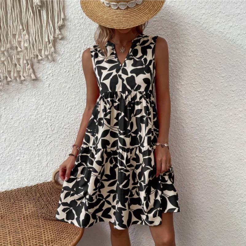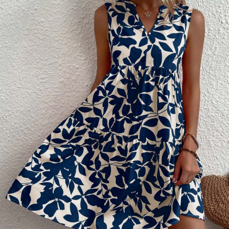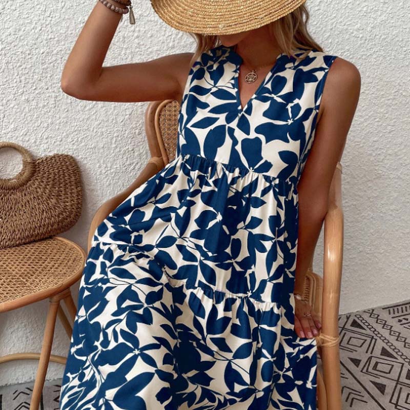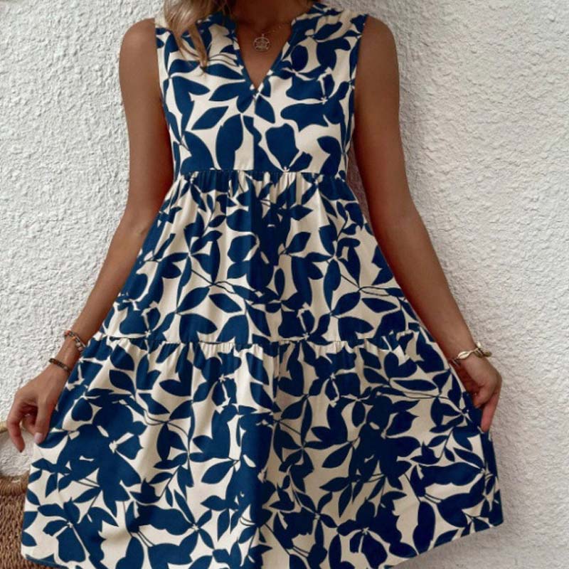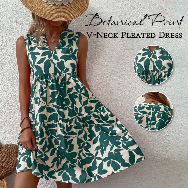🌸2025 New Arrival💕Botanical Print V-Neck Pleated Dress